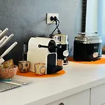 Het heeft een ingerichte kitchenette uitgerust met een oven en een vaatwasser.